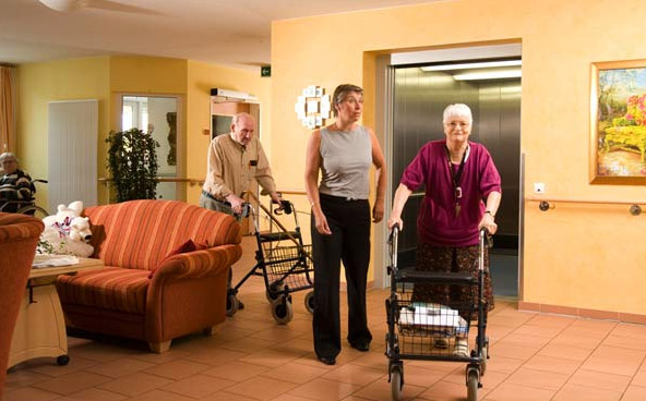 Großzügigkeit kommt in der architektonischen Gestaltung unseres Hauses zum Ausdruck. Ebenso ist die Innenausstattung auf die Bedürfnisse und körperlichen Voraussetzungen pflegebedürftiger Menschen abgestimmt. Von der ansprechenden Atmosphäre werden Sie auf den ersten Blick begeistert sein: Helle Hölzer, ein edles Design und ausgewählte Stoffe fallen ins Auge.