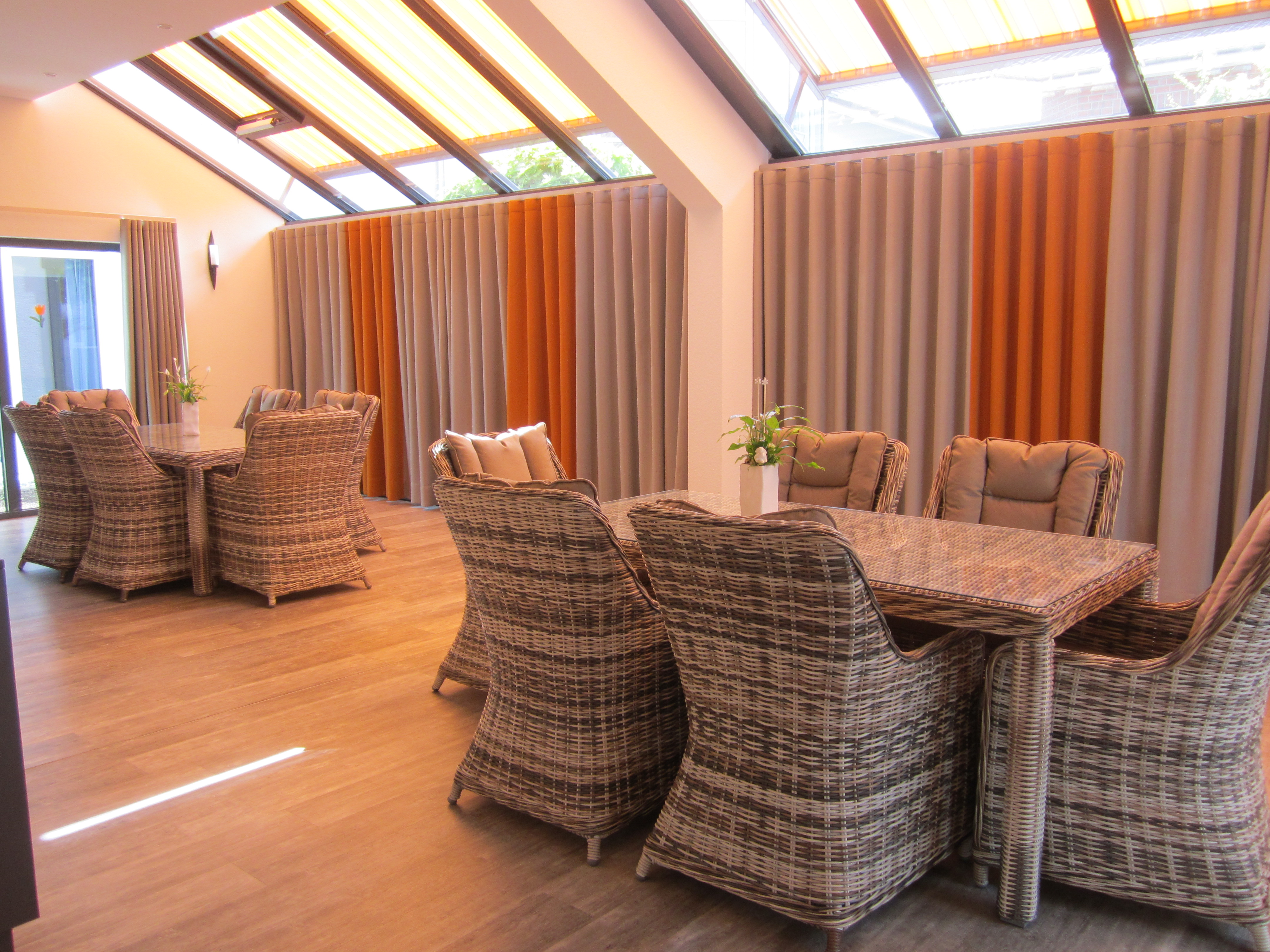 Die große Dachterrasse des Hauses steht allen offen. Dort genießen Sie beispielsweise den weiten Ausblick, den Nachmittagskaffee oder die Sonnenstunden. Neben öffentlichen Treffpunkten zum Kontakt mit anderen Bewohnern im Haus gibt es Nischen, in die man sich bei Bedarf zurückziehen kann. Im Flurbereich mit seinen Erkern laden die Sitzgelegenheiten zum Verweilen oder zu einem Gespräch ein. Küche, Ess-und Wohnzimmer stellen die zentralen Punkte im Haus dar. Diese Räume nutzen wir ebenso wie den großen Wintergarten oder den Pavillon im Garten für unsere Veranstaltungen in der Hausgemeinschaft.