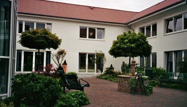 In der weitläufigen Parkanlage die das Pflegeheim umgibt, begegnet man sich. Hier lassen sich die schönen Tage an der frischen Luft verbringen: beim Wandeln auf den Wegen auf der Parkbank oder im Strandkorb.